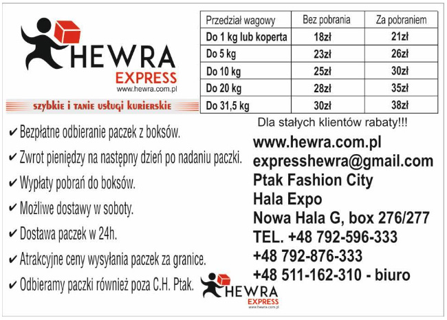 Paczki wysyłane są za pośrednictwem firmy HEWRA i wykonawcy usługi kuriera DPD lub GLS.